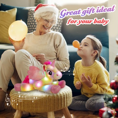 48cm Rainbow Led Plush Toys Musical Throw Pillows Unicorn Lullaby Soft Stuffed Animals Birthday Gift For Kids Girls Luminous Toy Unicorn Pgmall